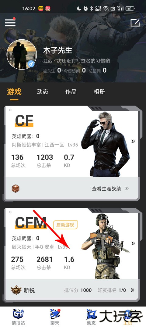 3、如果想查看个人信息,不用登录到游戏里,在CF掌上穿越火线中就能进行战绩查询、仓库管理和资产统计。