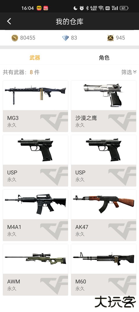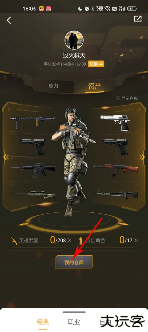 4、点击下方的我的仓库,就可以查看游戏中的所有游戏武器和道具了。
