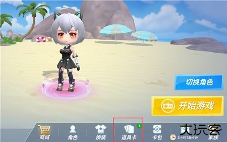 1、在游戏大厅界面“开始游戏”按钮左侧有一个“道具卡”按钮,点击会进入道具卡界面;
