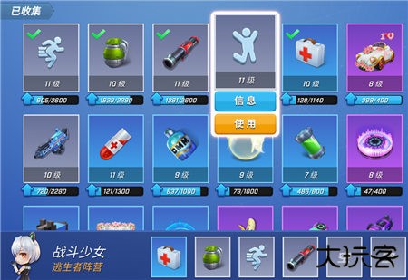 4、有空的卡槽时点击想要放置的道具卡后会激活“使用”按钮,点击按钮即可完成装备道具!