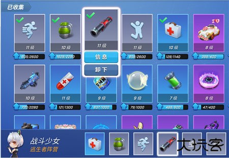 3、进入道具卡界面后,选择想要更换的道具图标,会激活“卸下”按钮,点击按钮就可以完成卸下道具;
