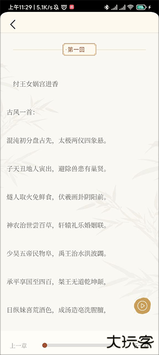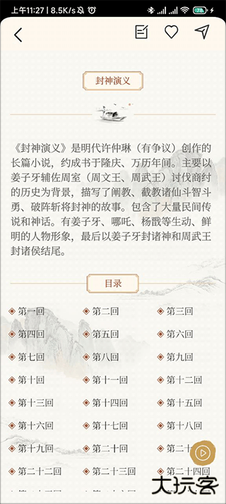 4、在典故详情界面我们就可以这个典故的详情以及目录,点击右下角的播放键就可以收听了。