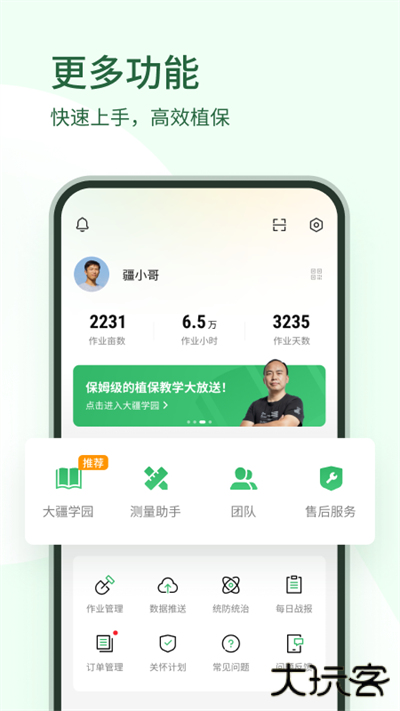 大疆农服是由深圳市大疆软件科技有限公司打造的一款无人机农业服务软件,为你带啦一站式作业管理、农业植保服务、订单服务和飞行记录等超多实用的功能,并且还可以让你精准的记录作业数据,进行作业进度、航线等信息的实时查看,还能让你将一次作业拆分为多个任务分发给多个团队,这样就能完成多人协同的高效作业模式,可以很大程度上提高农业的种植效率,完善的任务管理系统可以让你迅速的完成任务与工作的协调、分配,感兴趣的小伙伴快来下载体验。