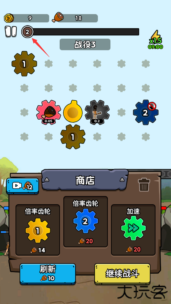 2、随着齿轮转到生产人类兵种在战场中进行战斗。