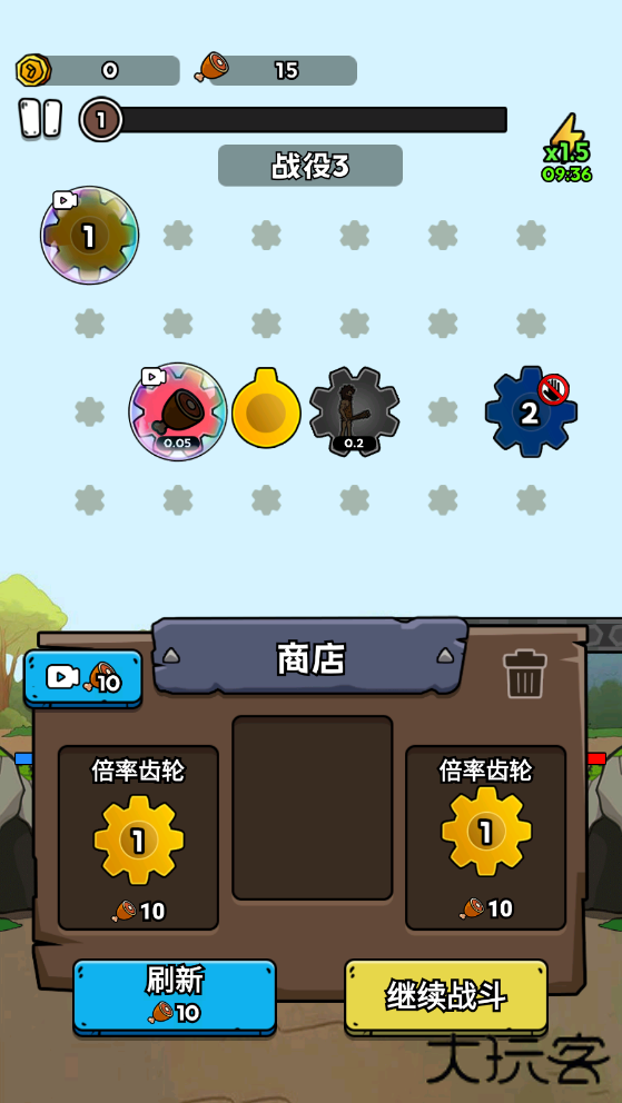 3、击败敌人可以获得金币、经验值,当经验值升级时可以选择齿轮或者人类兵种。