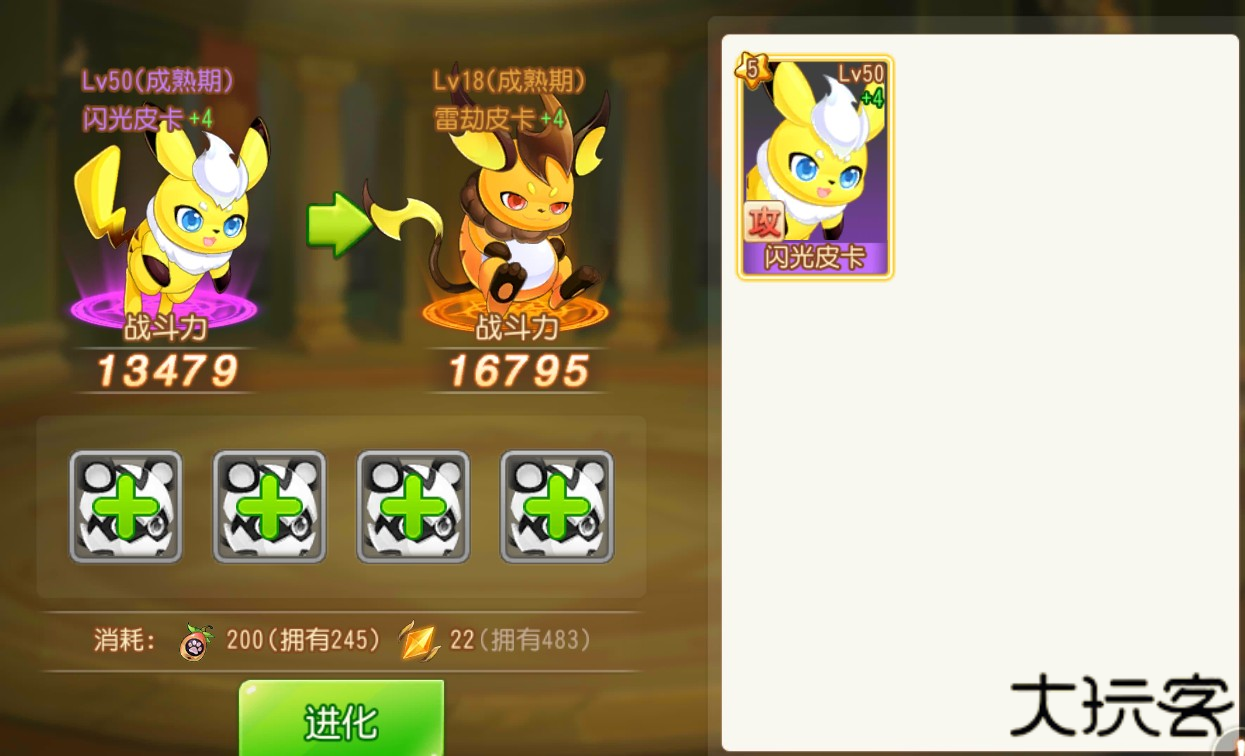 开启圣光系统后,宠物也相对应的开启了圣光进化系统,紫色宠物进阶+4并且等级超过45级的时候,可以通过吞噬4只本体进化为橙色宠物,进化为最终形态。