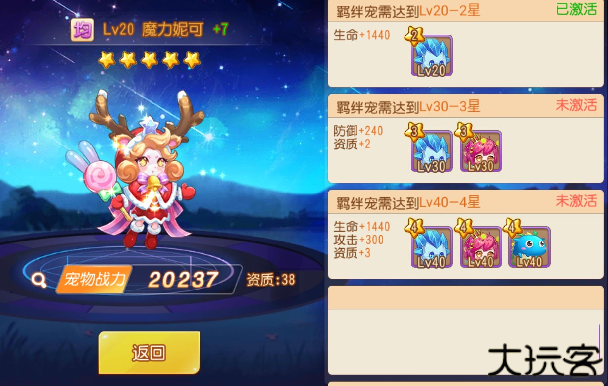 宠物星数可以在宠物达到特定等级后,吞噬相同的宠物进行提升,每提升一个星数,相对应的属性也会提升,并且在技能栏位也会增加,星数是宠物战力最重要的部分哦。