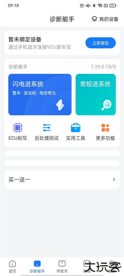 1、下载后打开app点击诊断能手,之后点击顶上的立即绑定