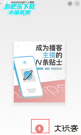 5、点击麦克风图标即可开始录制,录制完成了就能上传自己的音频作品。