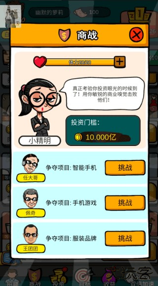 3、当你积累到了一定的财富为了能更好的登上更好位置的排行榜,可以去和其他老板一样参加商战。