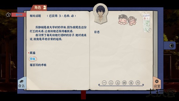 6、另外,点击左上角记事本可查看角色介绍,以及部分游戏信息。