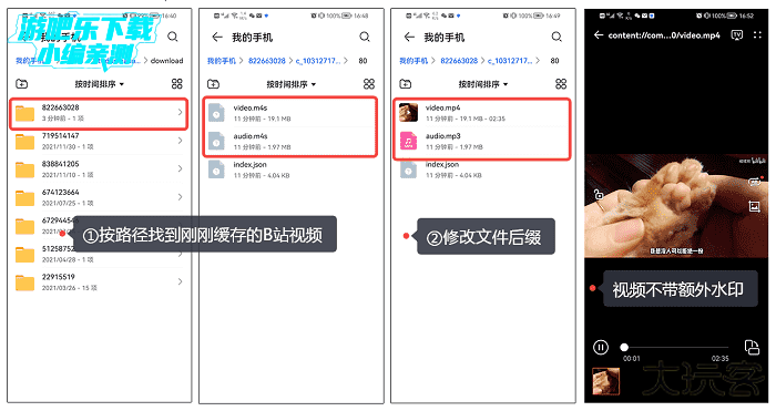 步骤3:把它们的后缀.m4s分别改成.mp4和.mp3;