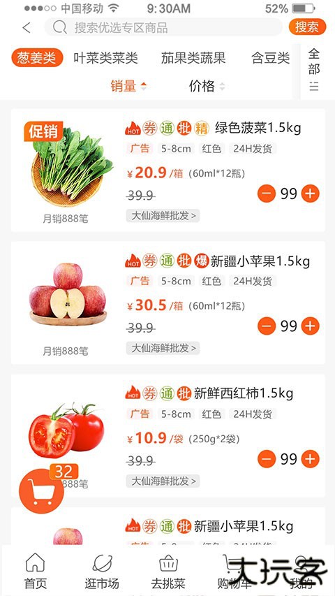 5、或者是在分类界面,按商品类型进行挑选,例如根茎类、叶菜类等。