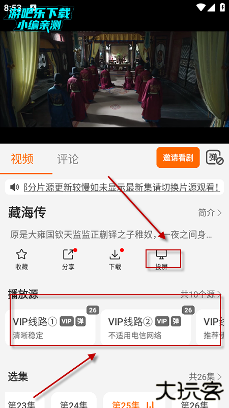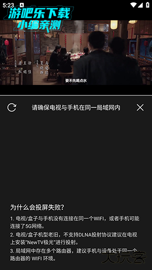 4、播放页点击“投屏”按钮,连接同一WiFi下的电视设备,即可将视频投至大屏观看。