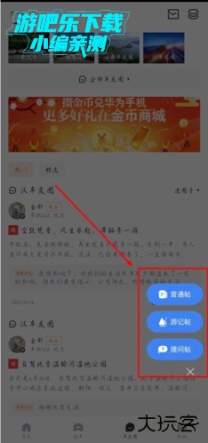 2、接着点击它,就会分别弹出【普通帖】【游记贴】【提问贴】这三个类型,选择自己需要的就可以;