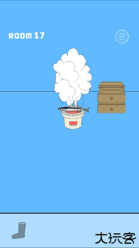 3、然后移动到左边回来,点击柜子,获得火柴,将鱼放在炉子上,