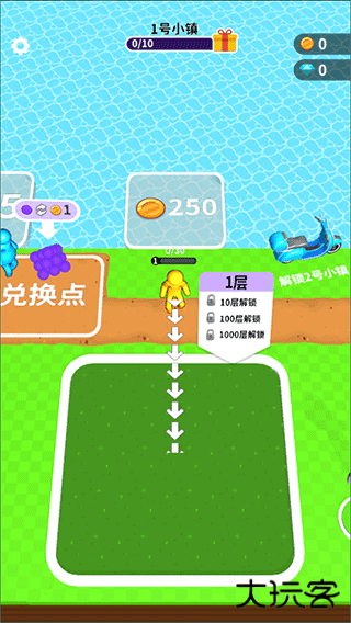 5、更多小镇等你解锁,越往后面的小镇,每个小球可以兑换更多的金币哦。