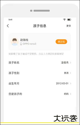 点击孩子头像,进入孩子信息页面,点击右上角【更多】