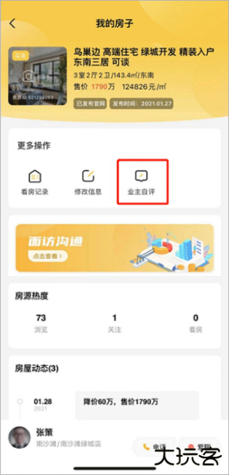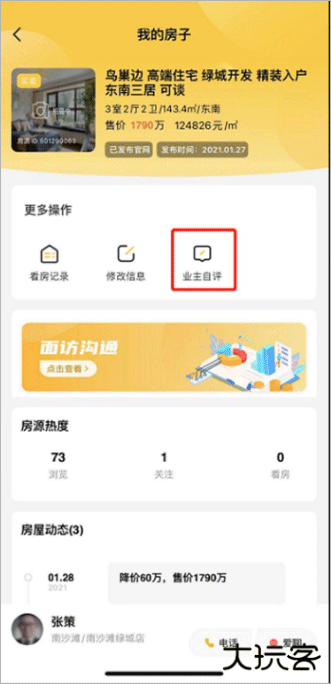 【入口二】:登录APP-首页-【我的资产】-点击房源-进入委托房源详情页-【业主自评】-进行编辑和提交即可。