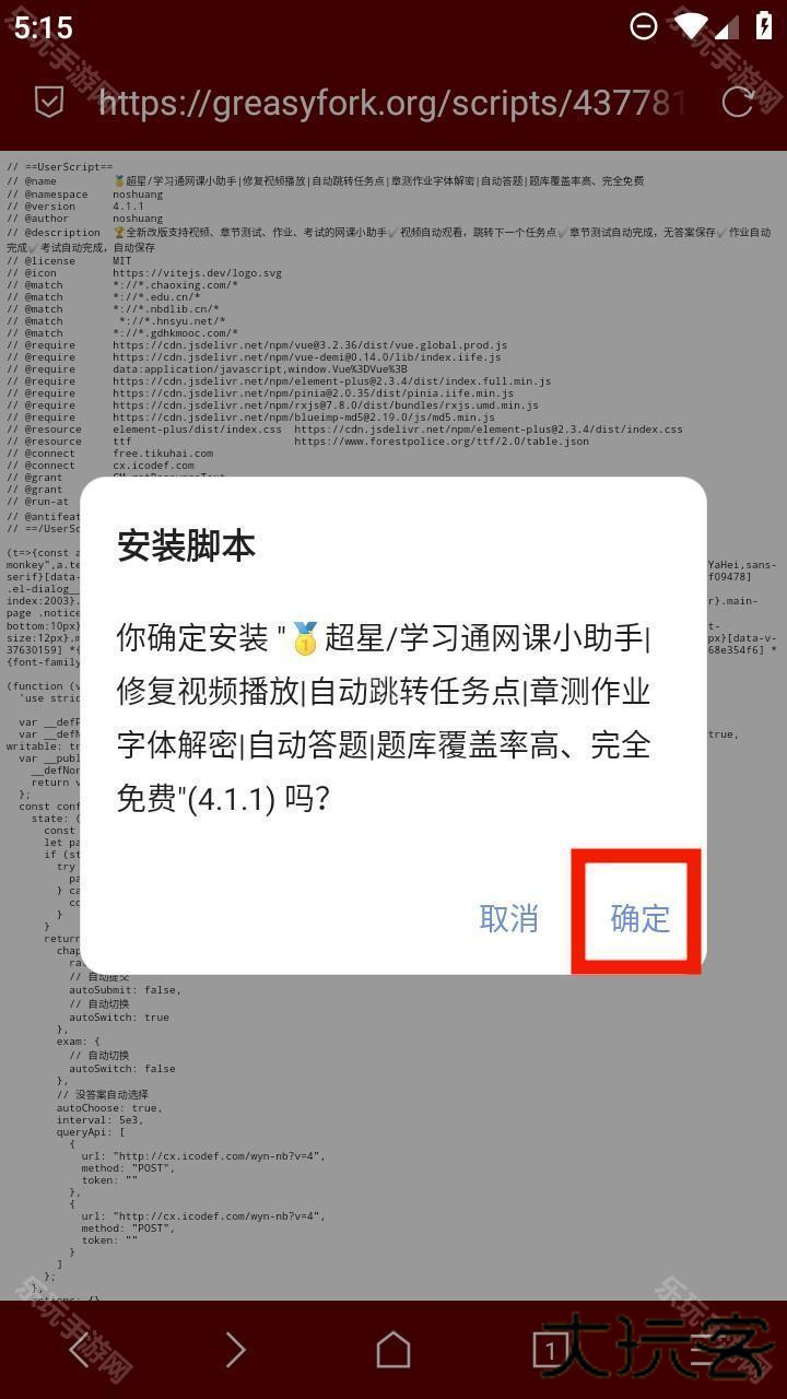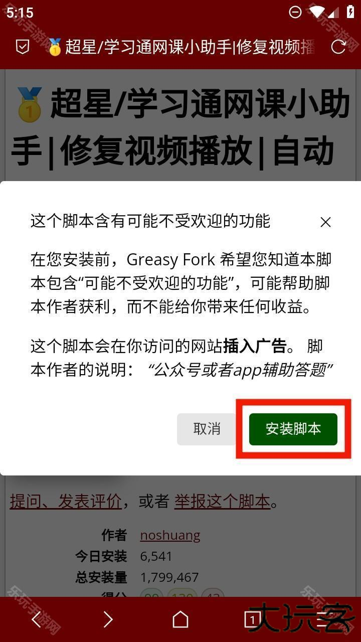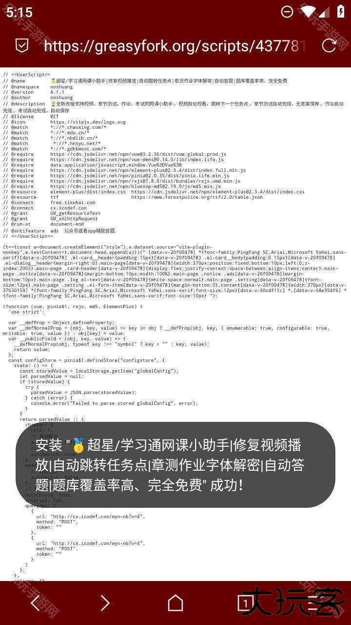 6、脚本就安装成功了,过程并不复杂,电脑端的脚本安装也是这个步骤。