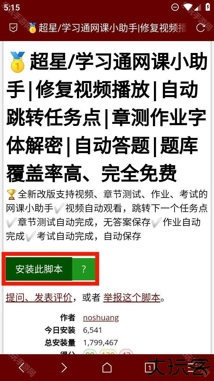 3、随便选择一个脚本打开,点击【安装此脚本】。