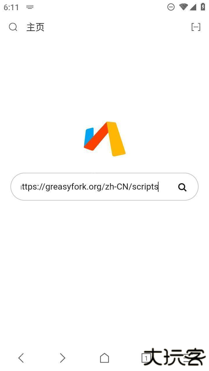 1、在本站下载安装好via浏览器,打开之后,在浏览器搜索栏中输入Greasy Fork脚本网站。