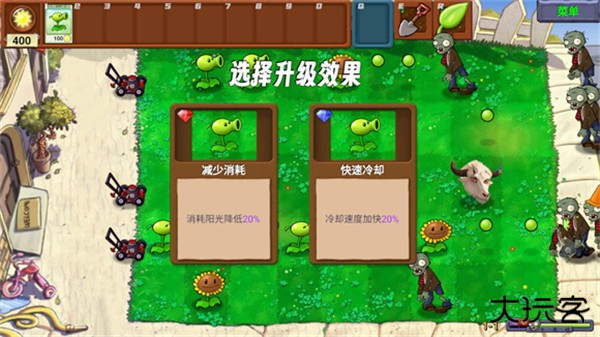 6、击败僵尸有几率会掉落钻石,钻石可以用来升级植物获得各种效果。