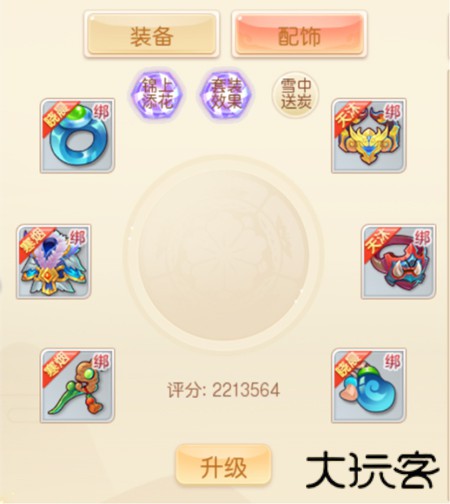 2、游戏一共有六套配饰,天沐、霸图、破斧、寒烟、残梦、晓晨,可根据需求合理搭配配饰(配饰可大量增幅战力)