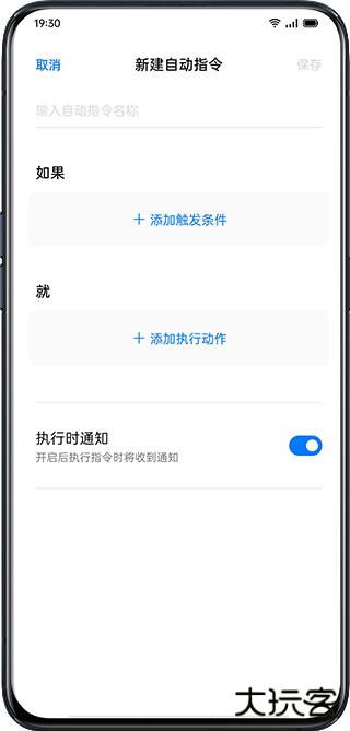 输入自动指令名称:设定自动指令名称,方便自己理解指令。如到家打开超清视效,到公司打开免打扰模式等。