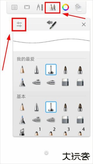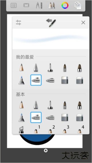 3、半径条正上方的标志是选择上一次使用的画笔或者橡皮擦或者花纹;