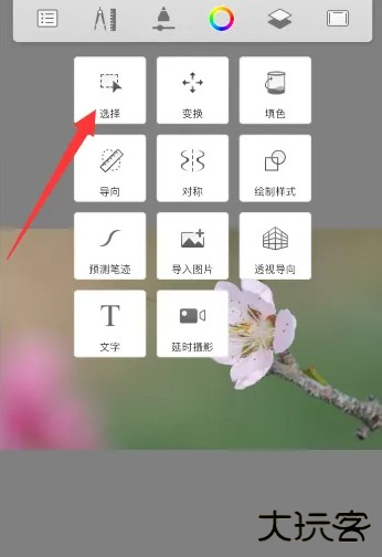 Sketchbook软件中导入素材后,点击顶部圆规和尺子在一起的图标。