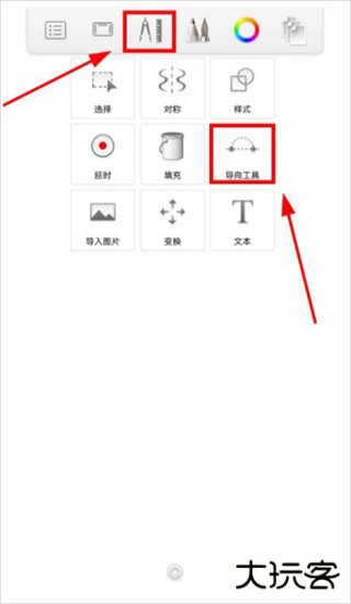 2、点击如下图所示的图标,选择“导向工具”画出下面的效果;