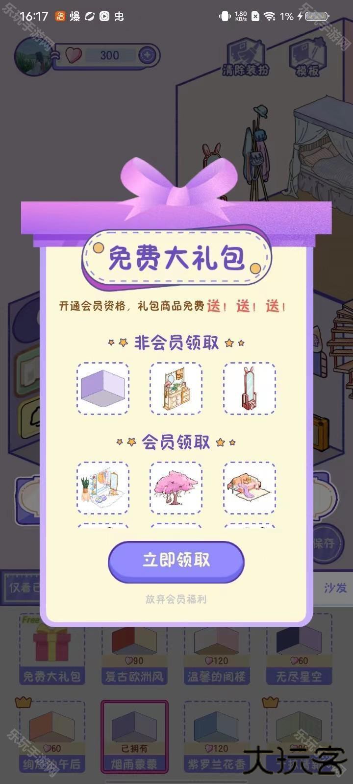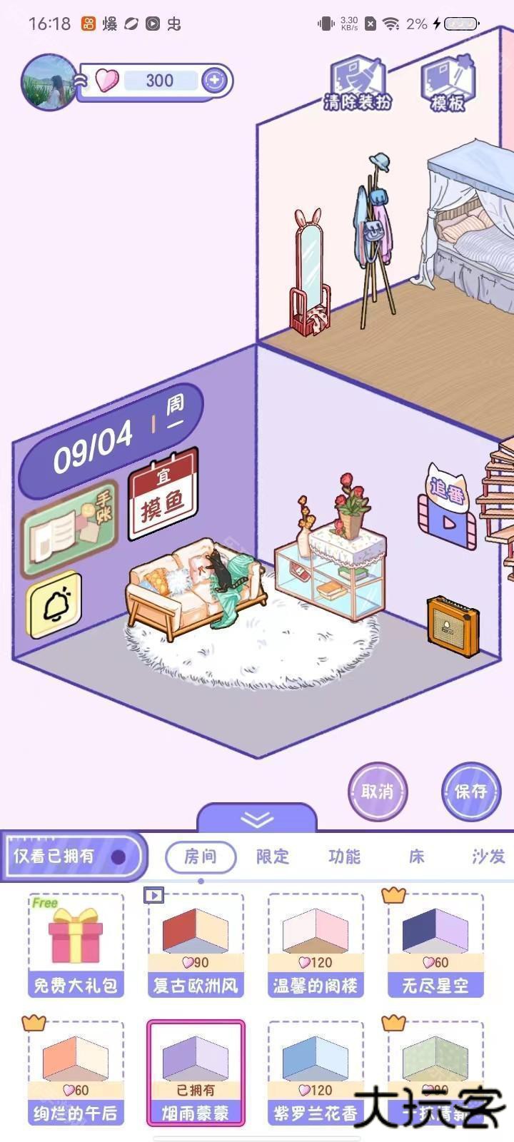 3、进入装扮页面以后,在分类列表可以左右滑动,点击就可以查看对应的分类,分类下面会有很多的装扮道具,可以在房间中进行搭配,搭配好理想装扮以后,点击【保存】即可;