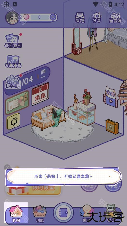 1、首先,用户在本站下载并安装好app后,打开进入,点击【装扮】,开始记录之旅;
