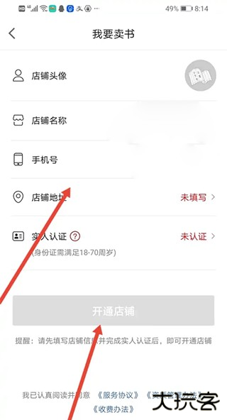 4、来到我要卖书界面,接下来按指示填写资料,然后点击【开通店铺】即可。