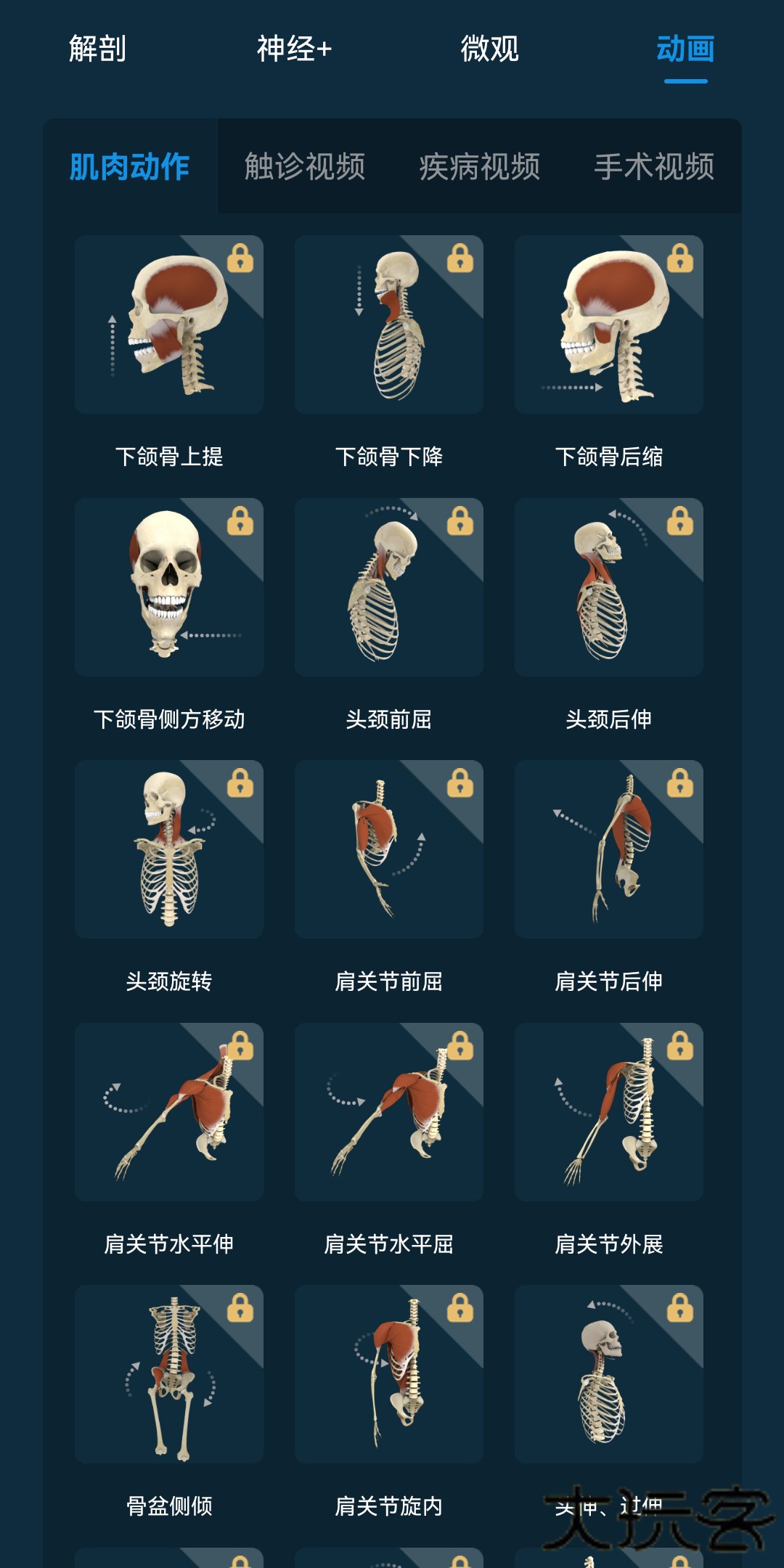 解剖大师app有着多种功能,包括AI智能体态评估、3D人体解剖、运动解剖、针灸学、康复处理和疼痛处理等等,适合康复医师、中医、针灸、健康培训以及推拿正骨师等专业人员使用,是医疗从业者的3D人体解剖学图谱资源平台。