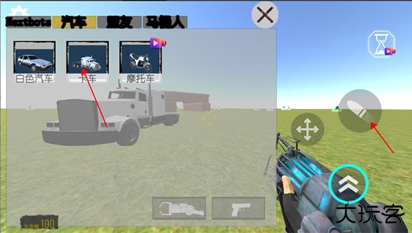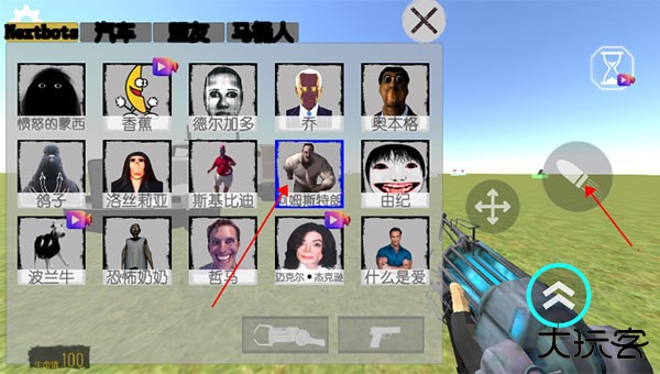 2、点击盒子,选择一个NEXTBOT,然后点击一下右边的子弹按钮。