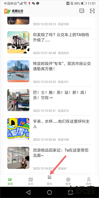 下载进入成都公交app,点击服务