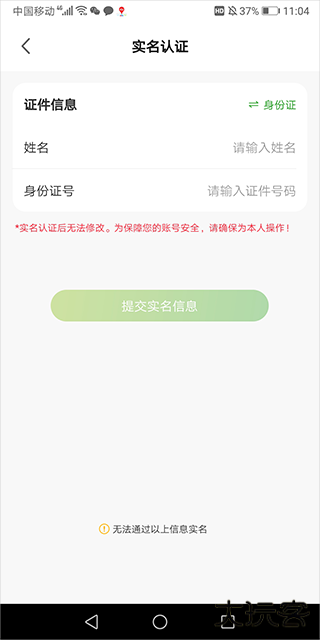 3、输入身份证号和姓名,并进行人脸识别,通过后即可完成实名认证