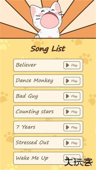 popcat音乐世界整个游戏就围绕着音乐主题展开,游戏曲目涵盖了各个国家和不同风格的流行歌曲,让玩家可以在游戏中欣赏美妙的音乐;