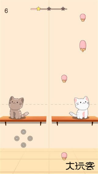 游戏规则非常简单,操作也非常容易上手,玩家只需要控制两只猫咪来收集甜筒即可,让玩家在快节奏的游戏中轻松愉悦;