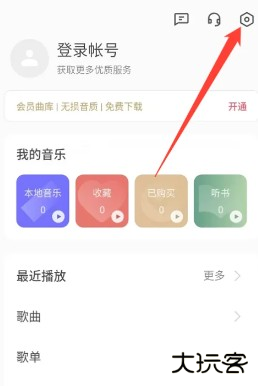 1、打开【我的】页面,点击右上角的【设置图标】。