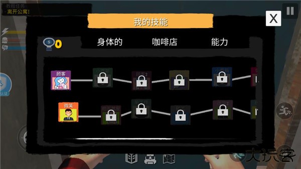 9、点击咖啡店,可以看到顾客等技能树。