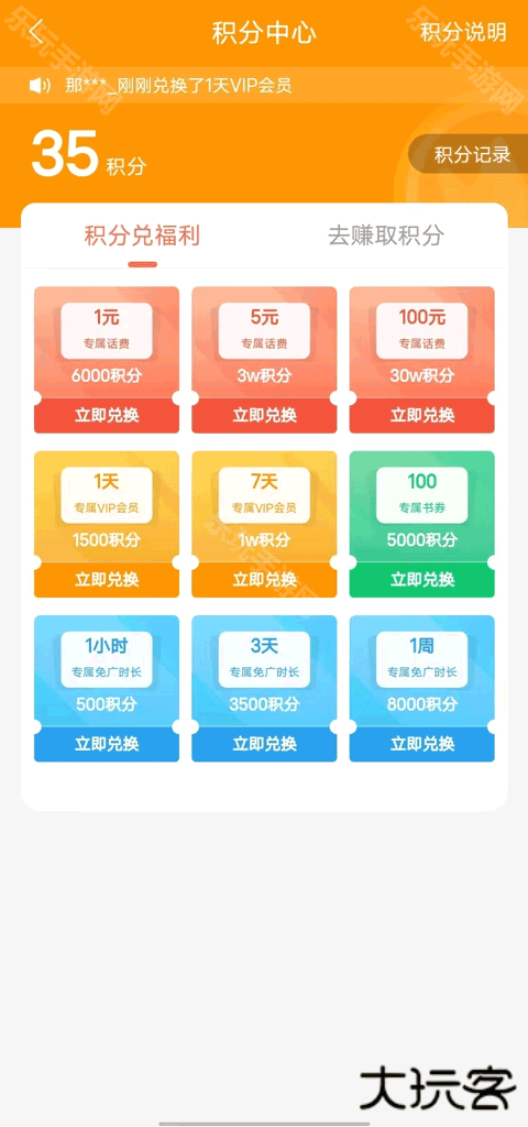 2、积分可以兑换各种福利,如6000积分可以换1元话费、1500积分可夺取1天专属vip、5000积分可换取100专属书券等等。