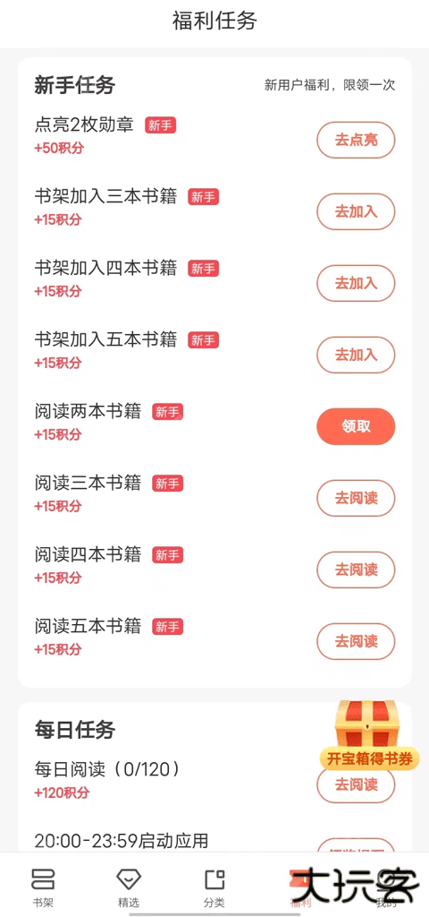 每天签到可获得书券奖励,观看小视频奖励可翻倍;