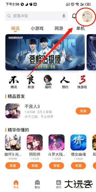 2、通过精选、排行榜、推荐和专题等方式,智能匹配游戏兴趣让好玩的游戏触手可及。