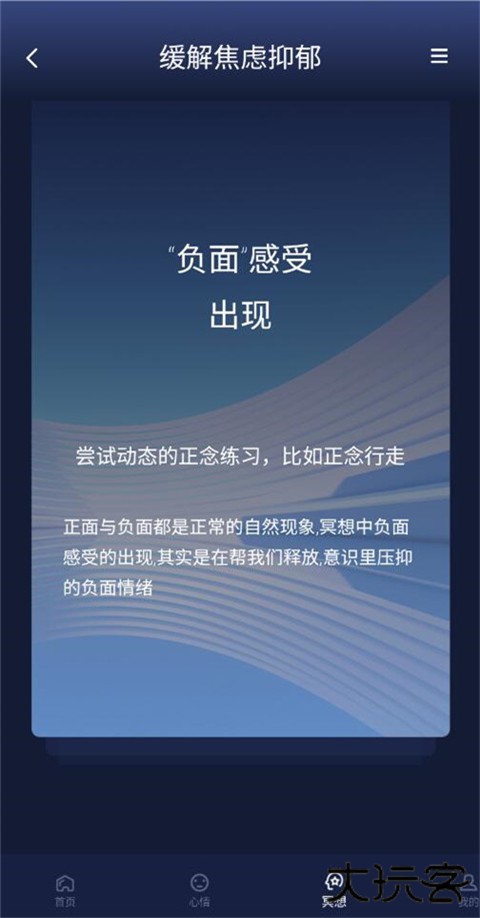 3、最具特色的功能还属冥想,在这里将会引导你如何进入冥想放松身心,这对压力巨大的年轻人来说非常有用