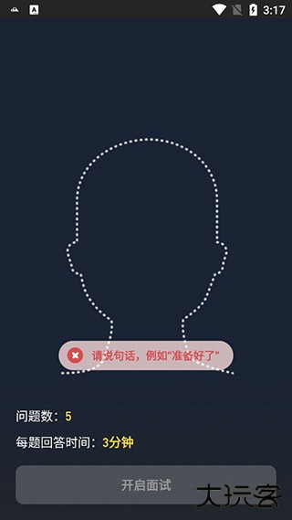 3、点击任意一项面试题训练,比如说句”准备好了“,点击即可开始面试;