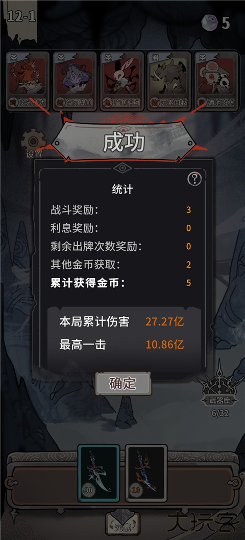通关需求两种武器加起来至少20把,有25把基本稳定。