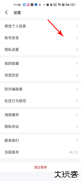 3、进入设置页面,往下滑动,找到【账号安全】;